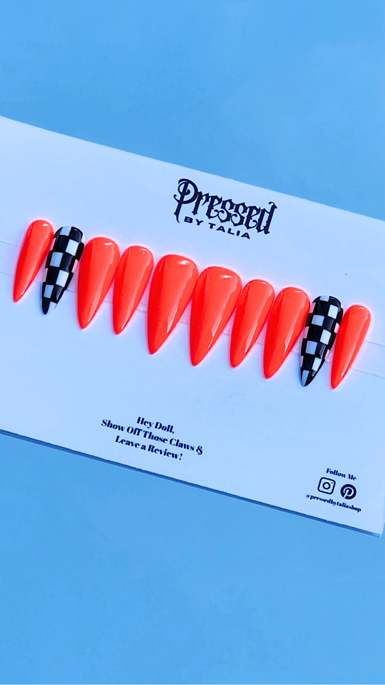 Coral Neon Racer (Short Almond - Glossy/Matte)